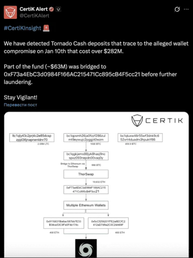 Анализ и схема движения украденных средств от CertiK