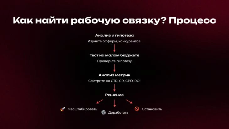 Шаг второй — собери связку и аналитику. Не просто запусти рекламу, а ты должен понять, где ты берёшь людей и почему именно они кликают на твою рекламу. Ну и тут сразу база: постбеки, сабы, нормальная аналитика. Если у тебя этого нет, то в моём понимании ты просто как бы угадываешь, тычешь пальцем в небо.