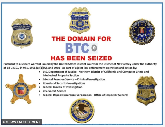 Домен BTC-e был изъят американскими правоохранительными органами, при открытии сайта появилась «метка» с соответствующей надписью