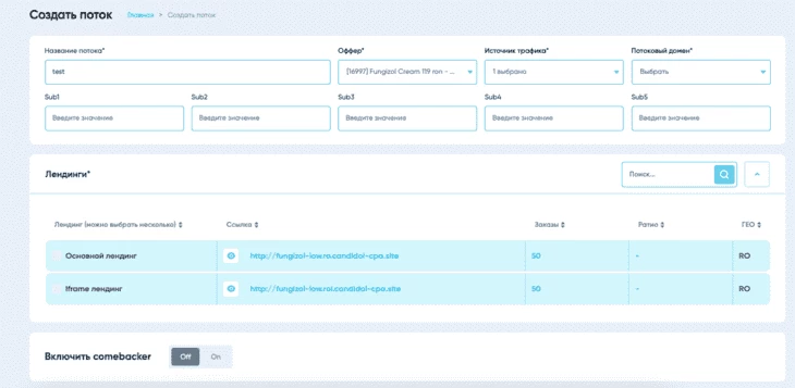 Теперь Binom знает, по какой ссылке отправлять трафик и к какой сети он относится.