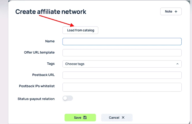 - Affiliate network – выберите из списка CPAgetti,