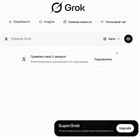 Переходим на сайт Grok.com, входим в аккаунт (могут понадобиться средства анонимизации). В правом нижнем углу кнопка Upgrade, жмем на нее.