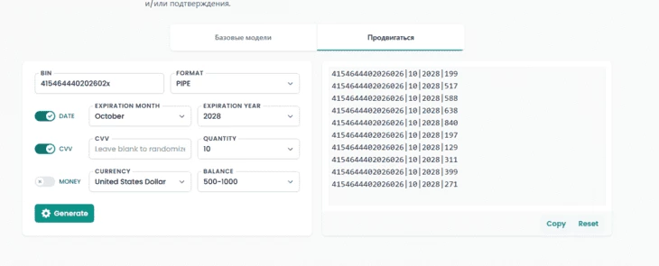 Появляется форма оплаты. Далее переходим в любой генератор карт: