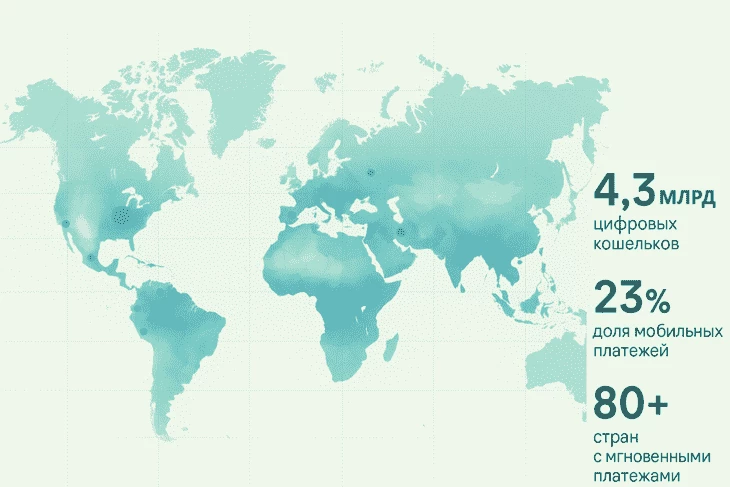 число пользователей цифровых кошельков достигло 4,3 млрд по всему миру;