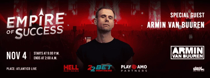 Большой нетворкинг-ивент в формате вечеринки от трех крупных партнерок: Hell Partners, PlayAmo Partners и 22Bet Partners. На сцене будет легендарный диджей Armin van Buuren. Вечер без дресс-кода и официальных речей — только музыка, свет и отдых после насыщенного дня.