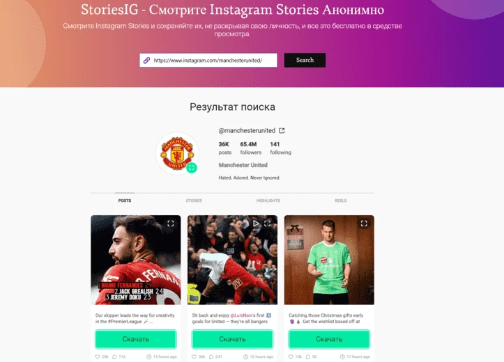 Insta-stories. Ещё один инструмент для бесплатного отслеживания активности социальных страниц. Через него можно анонимно смотреть insta stories, а также скачивать медиафайлы на компьютер.
