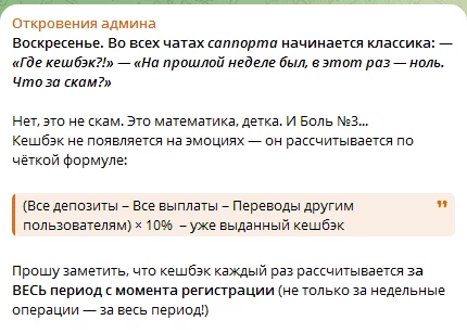 Единственный честный бонус, который часто даже не требует дополнительного депозита — это кешбэк, то есть процент от вашего проигрыша за расчетный период. Обычно он варьируется от 5 до 20% и зависит от уровня лояльности аккаунта.