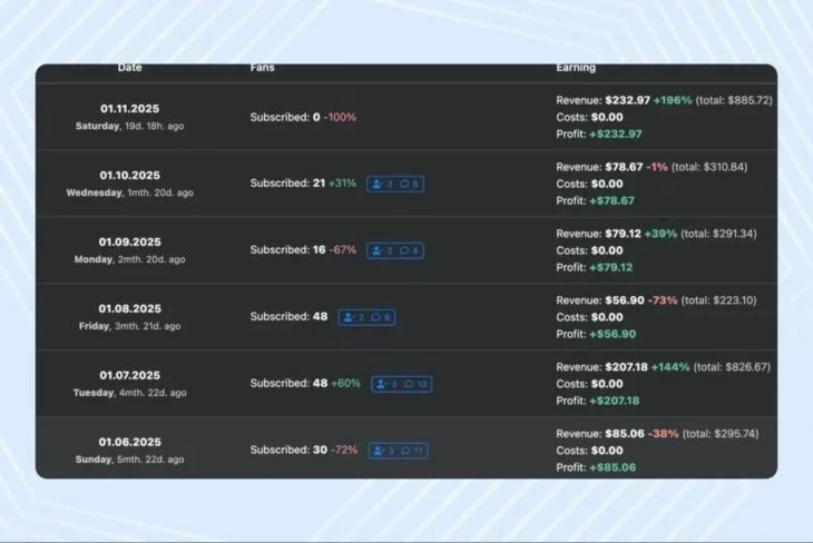 Судя по кейсам, заливать по ревшаре OF-трафик выгодно — выплаты могут долетать и после остановки трафика. Все зависит от платежеспособности фанов и подхода модели к продаже контента.