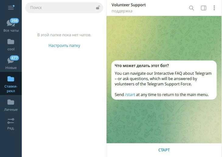 В Телеграмм есть специальный бот, который помогает пользователям решать различные вопросы. Чтобы его запустить, вам понадобится: