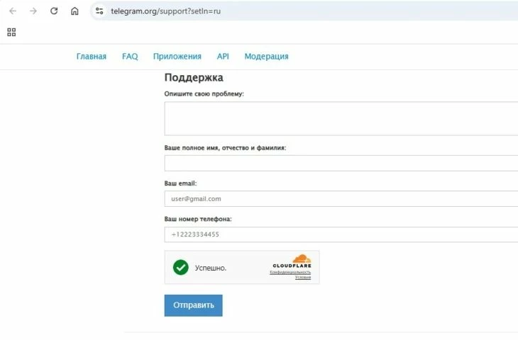 Как обратиться в техподдержку «Телеграмма» через форму обратной связи