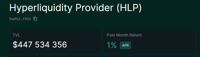 Другой вариант распространен среди perp-dex — с единым фондом ликвидности. К примеру, у Hyperliquid есть единый HLP Vault, который копится в USDT. Однако доходность тут очень малая — на момент написания статьи 1% годовых + есть риски просадки.