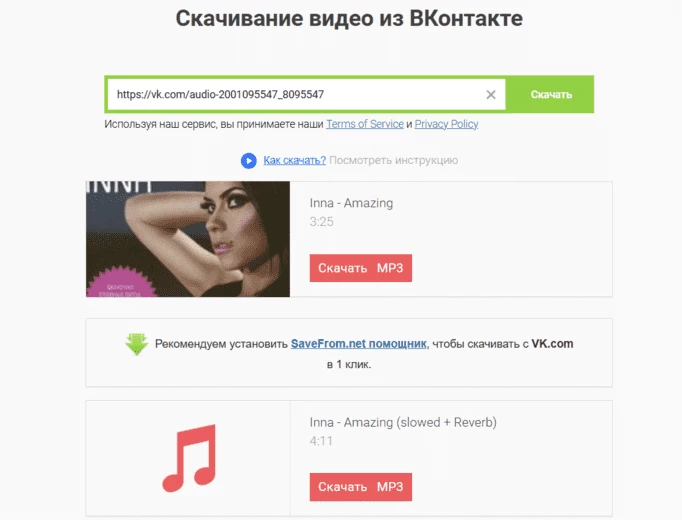 Онлайн-сервисы: скачать музыку из ВК без установки ПО