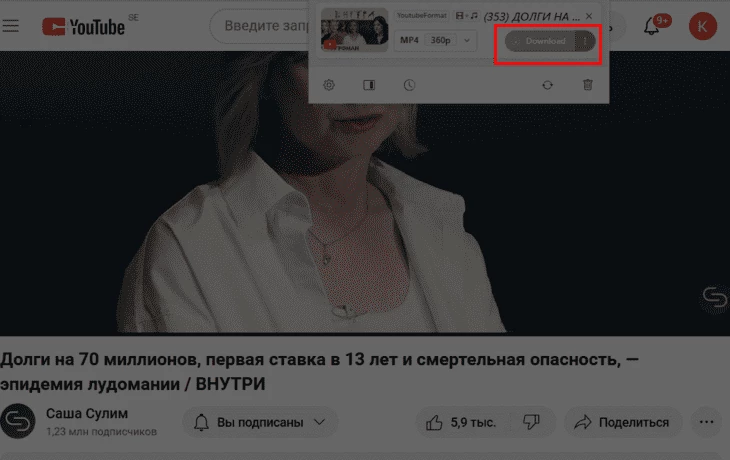 Скачать ролик с Ютуб можно при помощи расширений прямо на странице самой платформы. После установки в браузере появляется кнопка загрузки или пункт в меню.