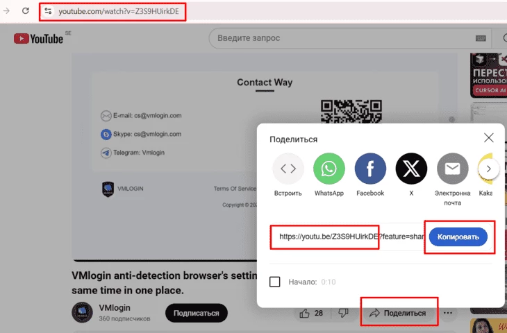 Подготовка: как получить ссылку на видео