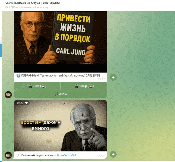 @LuxVideoBot — универсальный вариант для быстрой загрузки. Простой интерфейс: отправил URL, выбрал качество, получил файл.