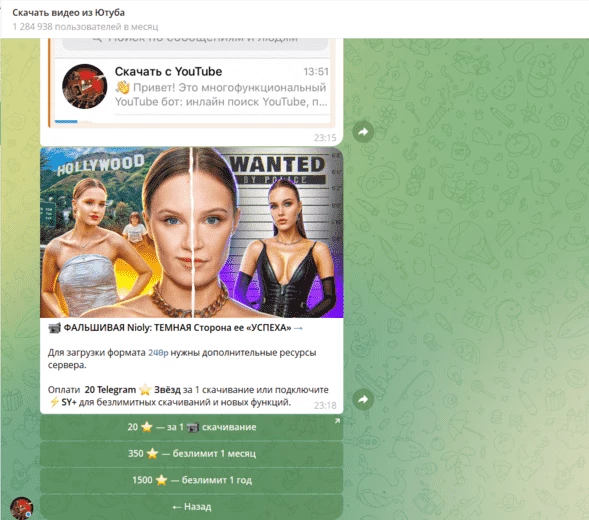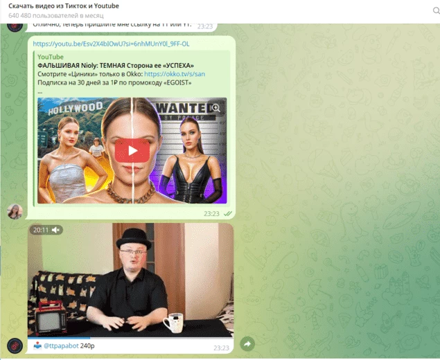 Самый быстрый и универсальный способ: просто отправляете ссылку, а в ответ получаете готовый файл. Работают как на телефоне, так и на компьютере. Главный минус — почти все из них платные, оплачивать доступ придется или в ТГ-звездах, или в рублях с карты.