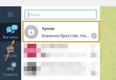 В настольных версиях (Telegram Desktop / macOS) раздел «Архивированные чаты» обычно всегда виден в левом столбце.