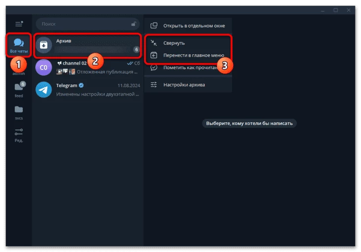 Полностью «скрыть» его, как на телефоне, чаще всего нельзя. Таким образом, ответ на вопрос, как скрыть архив в ТГ на ПК, заключается в сворачивании.