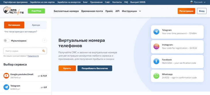 Sms-activate. Здесь можно выбирать из номеров для пользователей по всему миру. Он работает уже более 5 лет и пользуется большой популярностью, о чем свидетельствуют многочисленные положительные отзывы. Чтобы купить номер для Google, пополните счет в личном кабинете. Регистрация нового адреса обычно занимает всего пару минут. Но учитывайте, что низкий процент успешных активаций приводит к блокировке. В этом случае обратитесь в службу поддержки для решения проблемы с учетной записью.