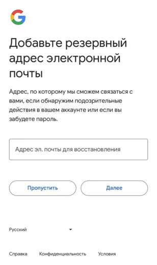 У аккаунтов, которые создавали без подтверждения кода номера, есть один существенный минус: восстановить забытый пароль будет проблематично. Чтобы обезопасить себя, стоит сразу же добавить e-mail на другое имя. В случае необходимости, ссылка для восстановления пароля для Google будет отправлена именно на него.