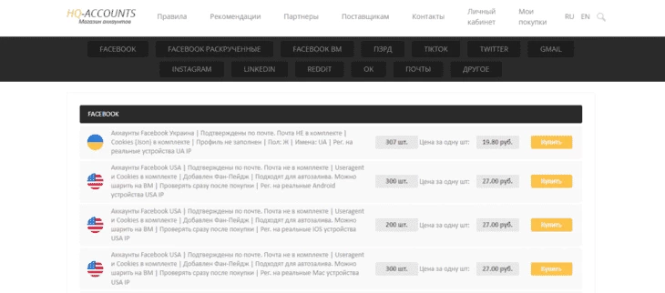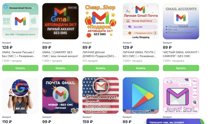 Если первые два варианта вам не подходят, купите готовую почту. В интернете есть специальные площадки, где продаются аккаунты для разных платформ. Это удобно, когда нужно много учетных записей. Правда, такое решение стоит немного дороже.