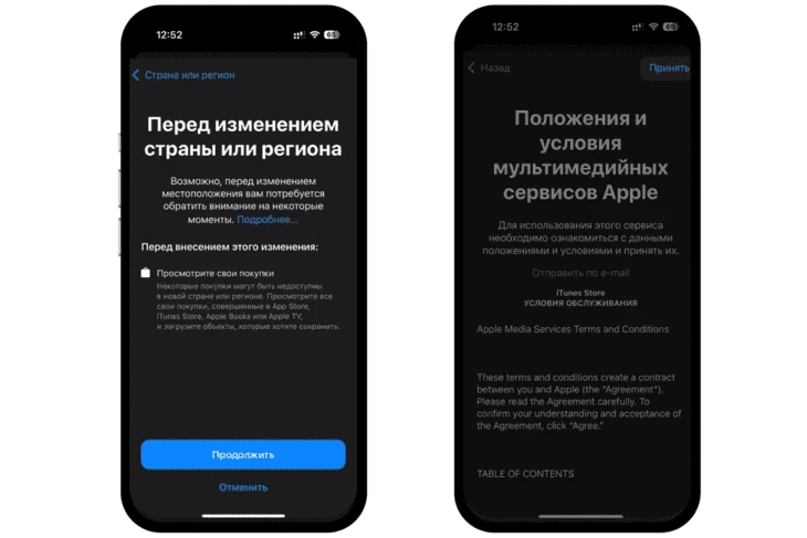 Смена региона в настройках телефона (iOS/Android)