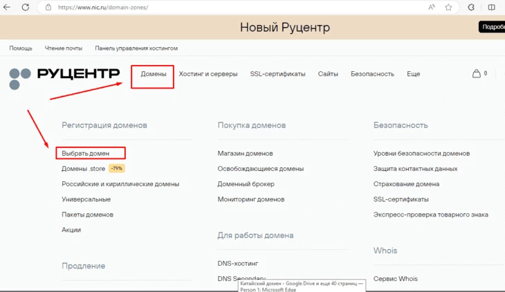 перейдите на главную Руцентра, выберите раздел “Домены” и вкладку “Выбрать домен”;