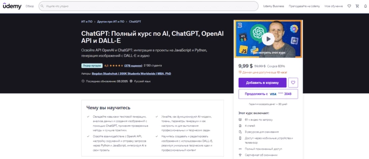 «ChatGPT: Полный курс по AI, ChatGPT, OpenAI API и DALL-E»