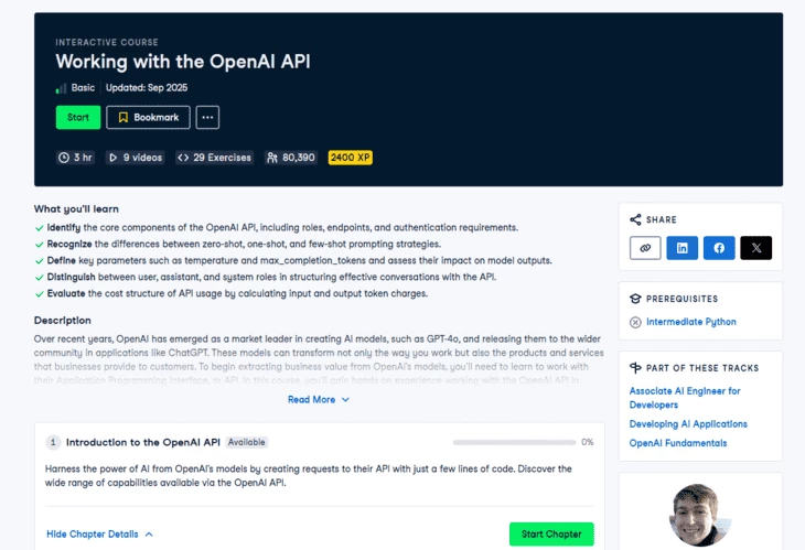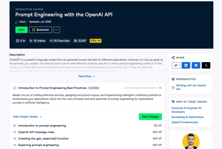 Курс близок к профи-уровню: на лекциях разбирают, как работать с промпт-инжинирингом, чтобы модель выдавала стабильный и прогнозируемый результат — в нужном формате, без мусора и лишней креативщины. Все это в контексте работы с OpenAI API.