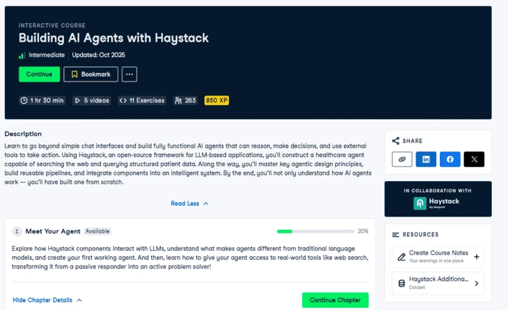 Haystack — это open-source-фреймворк, на котором можно собрать своего ИИ-бота под любые задачи. От простого помощника, который тянет данные из API и CRM, до полноценного автономного агента, который сам парсит метрики, строит пайплайны и выдает готовый отчет по ROI — без вашего участия. Курс как раз про то, как создать такого ИИ-коллегу на Haystack.