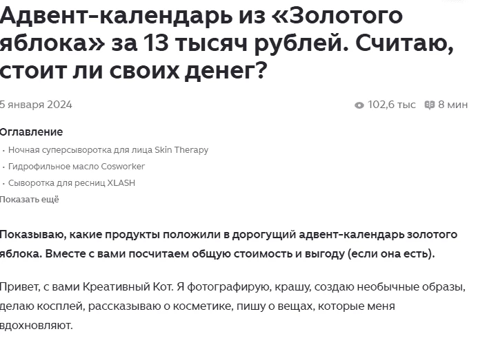 Например, в 2024-м хайп вызвал адвент-календарь от «Золотого Яблока» за 13 000 рублей, в котором таилось множество интересных и необычных подарков.