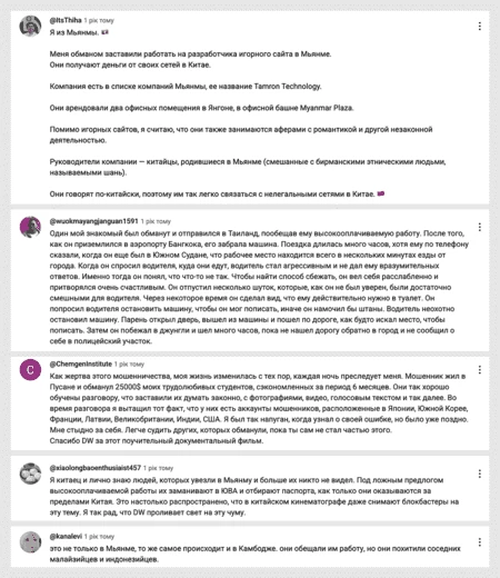 Комментарии под документальным видео о цифровом рабстве в Юго-Восточной Азии. Источник: YouTube