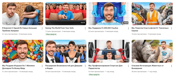 MrBeast Philantropy (28.4 млн) — канал, на котором блогеры публикует благотворительные ролики;