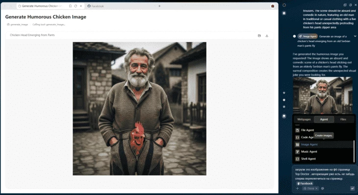 Если дать ссылку на ленд и инструкцию заполнить фанку инфой про оффер, Fellou наполнит ее графикой и контентом. А наличие терминала в агенте открывает возможности работы с API ФБ* напрямую, но статья не для технарей, поэтому пока пропускаем.