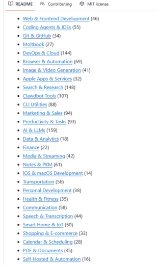 Что касается навыков (skills), ловите ссылку на GitHub-репозиторий, где собрано огромное количество skills для Moltbot.