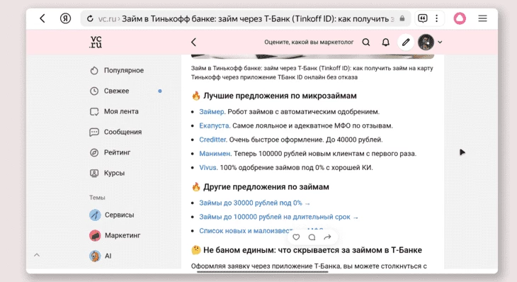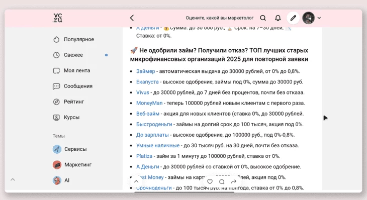 Главное преимущество — стабильность. В отличие от платного трафика, где нужно постоянно вливать деньги, однажды опубликованная статья продолжает приносить лиды месяцами. Особенно это заметно в нишах с высоким спросом, таких как финансы и МФО.