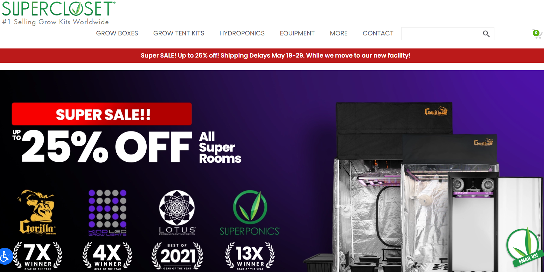 SuperCloset. Это ведущий мировой производитель оригинального оборудования для гидропоники, который предлагает самую большую линейку автоматизированных систем в виде шкафов, комнат, палаток для выращивания, а также оборудования и комплектующих. Средняя продажа на сайте составляет $2,349, а самый дорогой прибор стоит $5895, что позволит получать хорошие комиссионные.