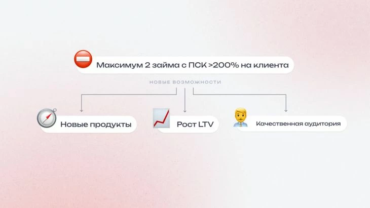 1. ✅ Ограничения на дорогие займы: Вводятся лимиты на займы с ПСК (полной стоимостью кредита) выше 200% – не более 2-х.