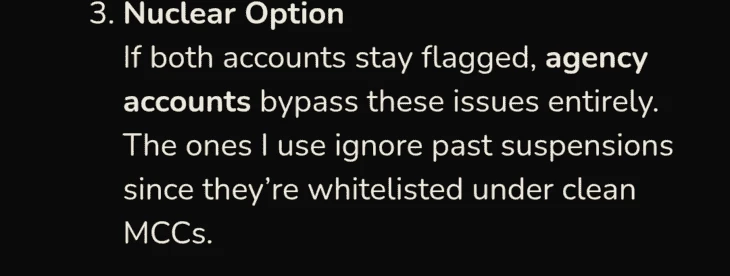 Подобная проблема отсутствует в работе с трастовыми и прогретыми акками, как те же агентские кабинеты Google Ads — те, кто их использует, могут лить на что угодно с заметно меньшим риском блокировки.