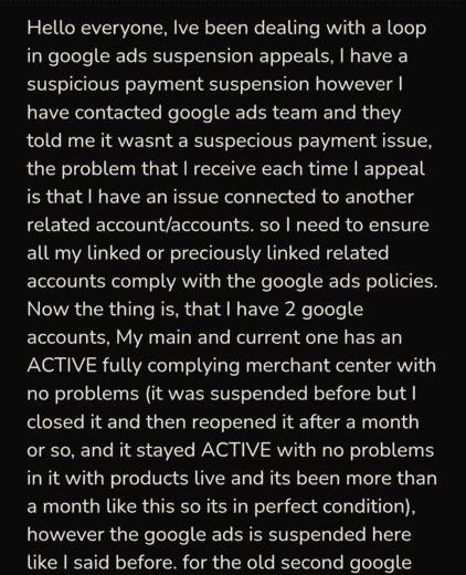 Опытный аффилиат жалуется на то, что его новый аккаунт Google Ads прогоняют по циклу проверки раз за разом, несмотря на апелляции