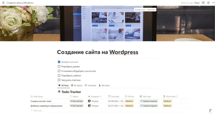 Notion можно превратить в настоящий личный органайзер, используя функции маркированных списков и чек-листов. В функционале также есть таск-трекеры, что позволяет отслеживать, как продвигается задача и на каком она этапе.