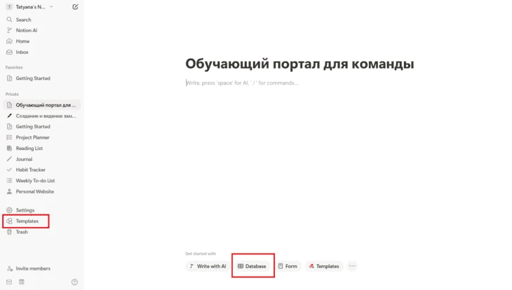 Шаблоны – используйте подготовленные заранее структуры для ведения заметок, отслеживания задач, ведения баз знаний.