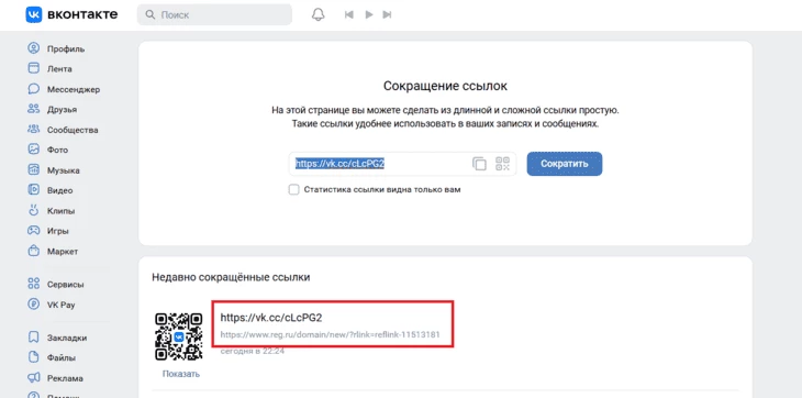 Vk.cc – вызывает доверие благодаря домену от ВК, дает доступ к статистике посещений. Требуется регистрация, полностью бесплатный.