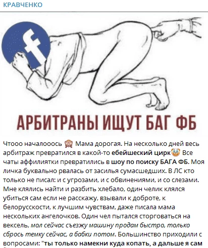 Пример рейджбейт-контента в афф-сфере. Арбитражник пишет, что ФБ только отнимает деньги, провоцируя тем самым споры в комментариях.