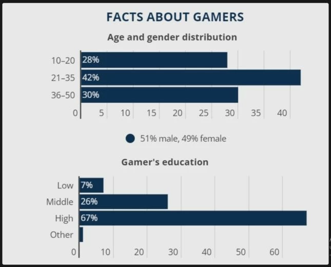 Большинство игроков имеют высшее образование, что может говорить о хорошей платежеспособности