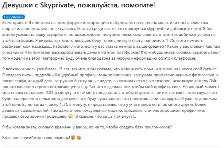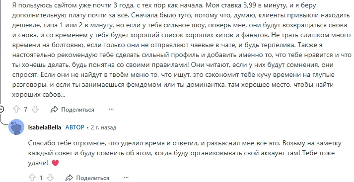 Адалт-модели отзываются о площадке неоднозначно. Например, одна девушка жалуется, что модели получают $1–2 в минуту, что, очевидно, намного меньше среднего прайса по рынку даже в странах tier-2 и tier-3.