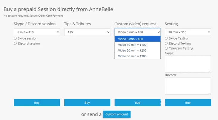 Выбрав модель, юзер настраивает будущий сеанс: продолжительность, стоимость, дополнительные услуги, включая текстовые переписки. После предоплаты пользователь переходит в Telegram, Teams или Discord и получает оплаченную услугу.