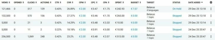 Беларусь остается «свежим» ГЕО для Telegram Ads. Несмотря на CPM, в зависимости от вертикали здесь можно получать результаты в диапазоне €0.2–2, а активная аудитория обеспечивает высокий отклик.