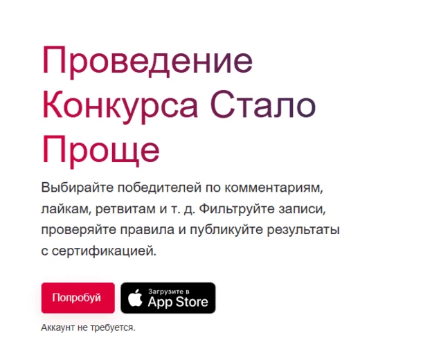 Инструмент для проведения розыгрышей ВКонтакте, имеет мини-приложение в соцсети.