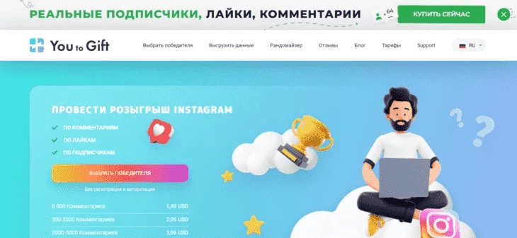 You to Gift — удобный сервис для проведения инстаграм-розыгрышей*.
